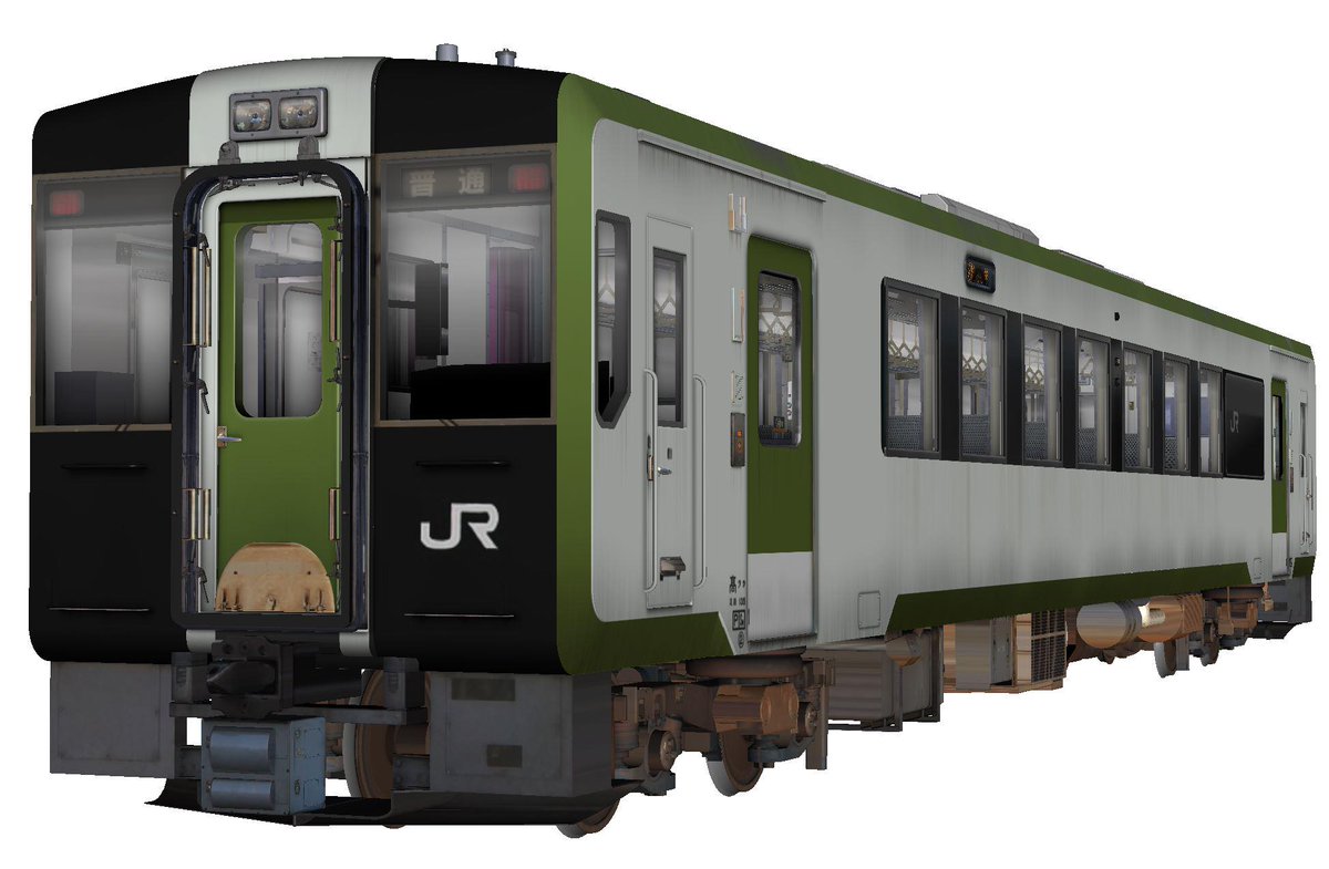 キハ110系試作車はブラックフェイスでの登場でした。残念ながら視認性が悪いため今の塗装に落ち着きました。。。現車はトイレにダミーの窓が貼られていたり運転室即窓が金属抑えだったりします。 #ブラックフェイス貼ってけ http://t.co/1PxB5YCQdH