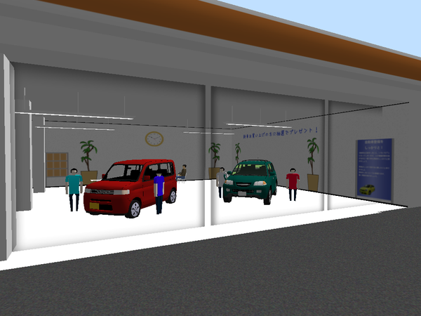 店内の書き割りをそれっぽく描きなおしてみた #RailSim #カーディーラー http://t.co/fFCv9NGT