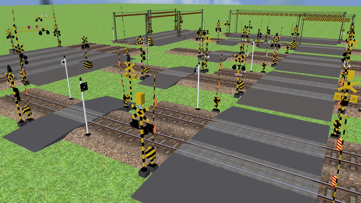 #踏切の日 #RailSim 用に踏切プラグインを作り続けて・・・ バリエーション多すぎて最早収拾がつきません。 https://t.co/mo8z4RisIT